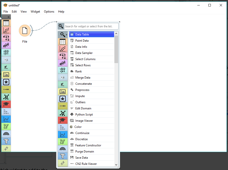 Orange의 핵심은 다양한 위젯을 조합하여 데이터를 분석하는 것입니다.